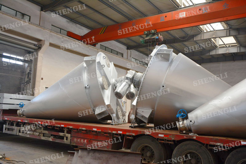 描述:雙螺旋攪拌機(jī)內(nèi)部安裝非對稱傾斜螺旋,雙螺旋自身旋轉(zhuǎn),提升物料,并有公轉(zhuǎn)減速箱驅(qū)動,沿錐體中心軸公轉(zhuǎn),360度攪拌物料,擁有非破壞性攪拌以及快速且無殘留卸料的特點(diǎn)。該設(shè)備配置自轉(zhuǎn)、公轉(zhuǎn)一體式驅(qū)動,內(nèi)設(shè)中心軸線噴液噴頭,筒體出料口配置球面閥。