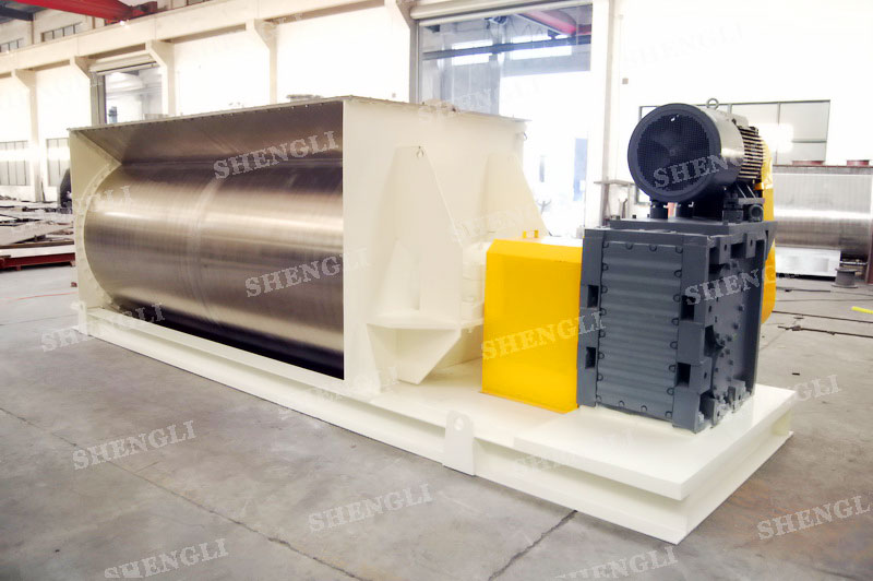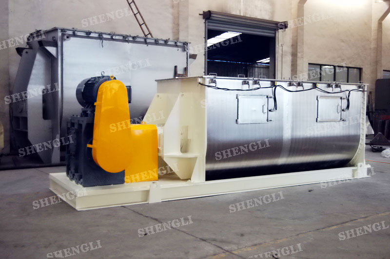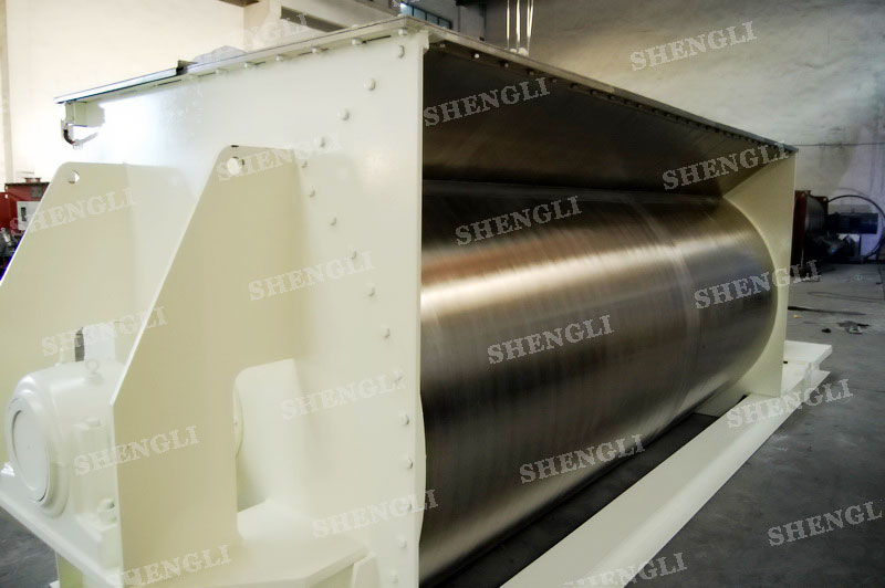 工作原理:臥式攪拌機(jī)采用U型筒體,內(nèi)設(shè)平行主軸,主軸上安裝若干傾角式槳葉刀,不僅能快速高效的攪拌物料,且不會(huì)破壞物料,不會(huì)卡料。