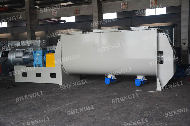 工作原理:臥式攪拌機采用U型筒體,內(nèi)設(shè)平行主軸,主軸上安裝若干傾角式槳葉刀,不僅能快速高效的攪拌物料,且不會破壞物料,不會卡料。