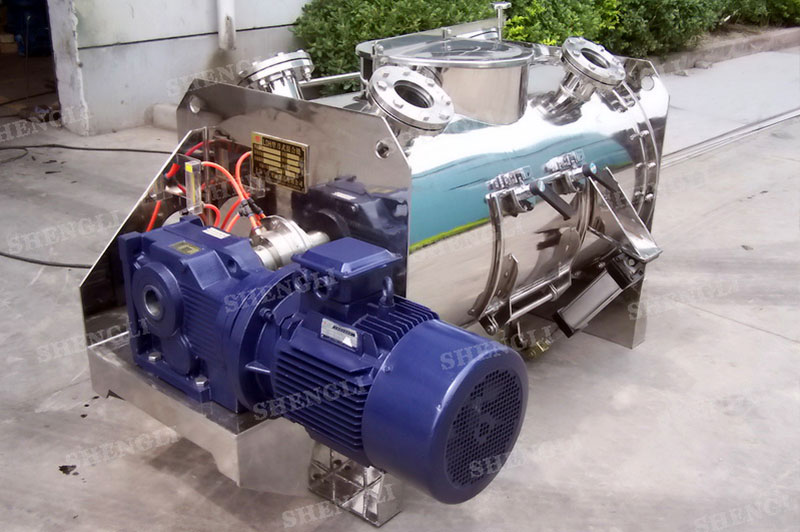 設(shè)備配置:配置K系列減速機,直角安裝;搭載兩臺3KW的高速飛刀;開設(shè)快開式檢修門及投料口;出料口采用氣動翻板閥;主軸與飛刀主軸采用氣密封;飛刀處設(shè)加液噴頭;設(shè)備內(nèi)、外表面鏡面拋光。