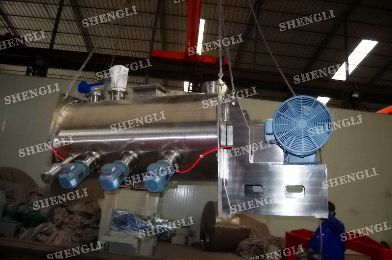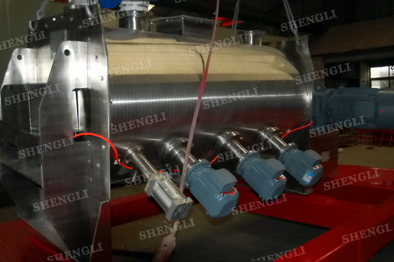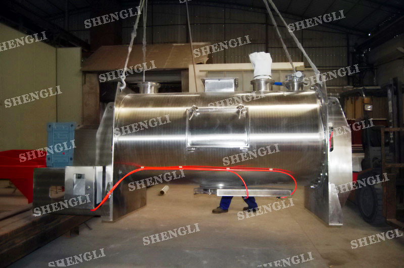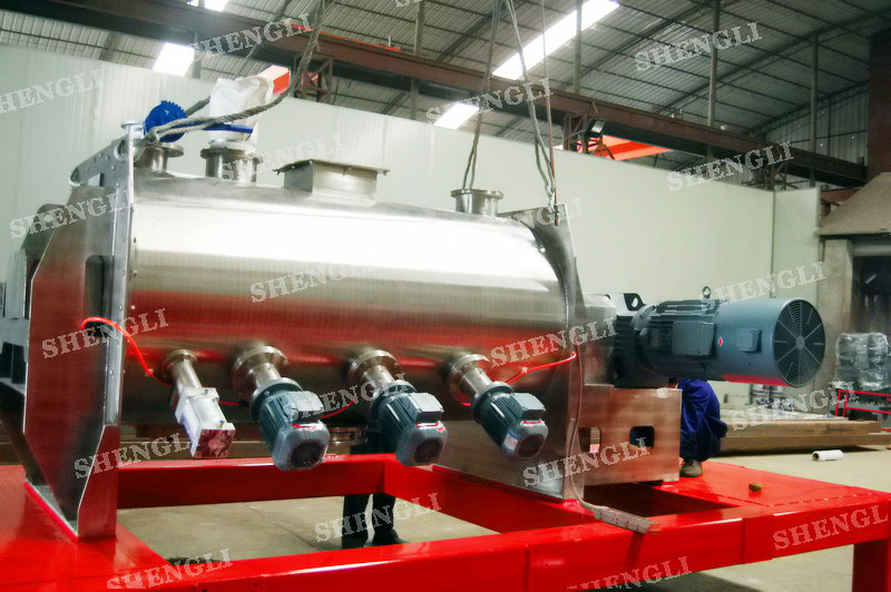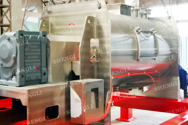 工作原理:犁刀式混料機采用臥式圓柱筒體,內(nèi)設(shè)平行主軸,主軸上安裝若干犁式刀頭,通過較快的旋轉(zhuǎn)速度,分割、重合物料,實現(xiàn)快速攪拌的功能,常結(jié)合1500-3000轉(zhuǎn)高速剪切飛刀相互作用。