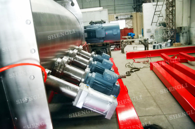 設(shè)備配置:配置SEW變頻電機K系列減速機,直角安裝;搭載三臺3000轉(zhuǎn)每分鐘的高速飛刀;開設(shè)快開式檢修門;出料口采用氣動錯位閥;主軸與飛刀主軸采用氣密封;筒體上設(shè)氣動在線取樣閥;設(shè)備內(nèi)表面鏡面拋光、外表面拉絲亞光。