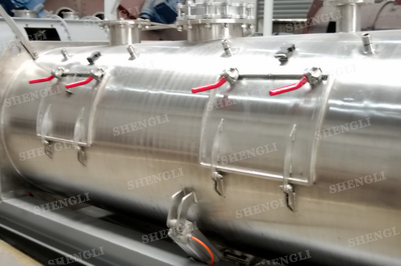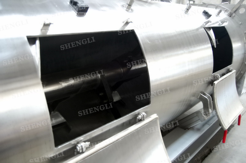 設(shè)備配置:配置SEW品牌R系列減速機(jī),平行安裝;筒側(cè)開設(shè)快開式檢修門附安全開關(guān);出料口采用氣動(dòng)翻板閥;筒體上設(shè)置噴液噴頭;設(shè)備主軸采用氣密封;設(shè)備內(nèi)、外表面拉絲亞光。