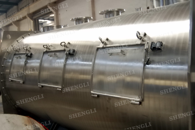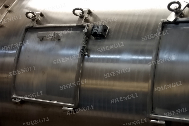 設(shè)備配置:配置R系列減速機(jī),直角安裝;搭載三臺(tái)3000轉(zhuǎn)每分鐘的高速飛刀;筒體外設(shè)導(dǎo)熱介質(zhì)夾套;筒側(cè)開(kāi)設(shè)快開(kāi)式檢修門附安全開(kāi)關(guān);出料口采用氣動(dòng)翻板閥;主軸與飛刀主軸采用氣密封;筒體上設(shè)氣動(dòng)在線取樣閥;設(shè)備內(nèi)表面鏡面拋光、外表面拉絲亞光。