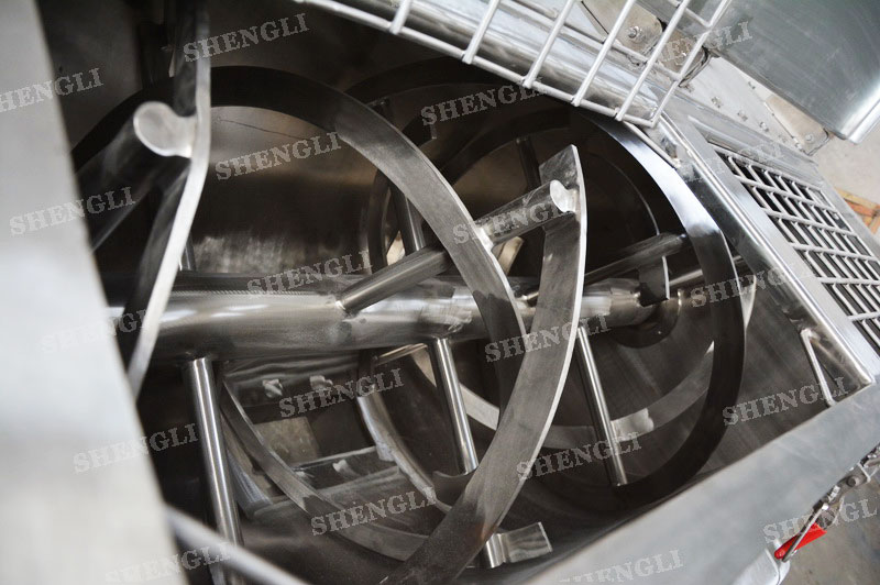 工作原理:螺帶混合設(shè)備采用U型筒體,內(nèi)裝平行主軸,主軸上安裝正反雙向的盤條螺帶,不同維度螺帶分內(nèi)螺帶與外螺帶,物料在螺帶的驅(qū)使下反復(fù)參混,能夠快速高效的混合。