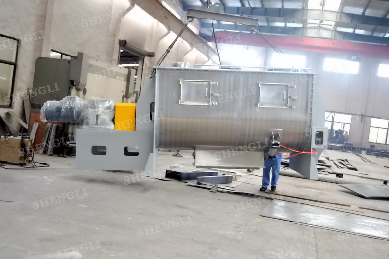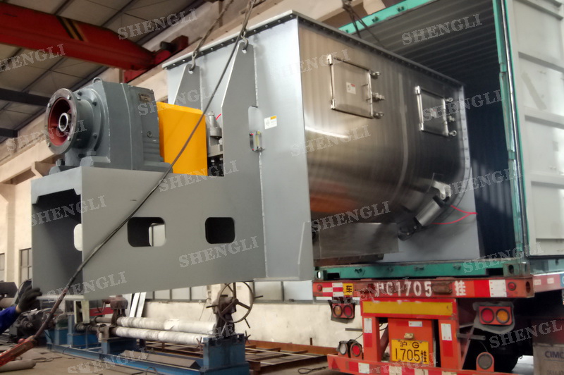 工作原理:螺帶臥式攪拌設(shè)備采用U型筒體,內(nèi)裝平行主軸,主軸上安裝正反雙向的盤條螺帶,不同維度螺帶分內(nèi)螺帶與外螺帶,物料在螺帶的驅(qū)使下反復(fù)參混,能夠快速高效的混合。