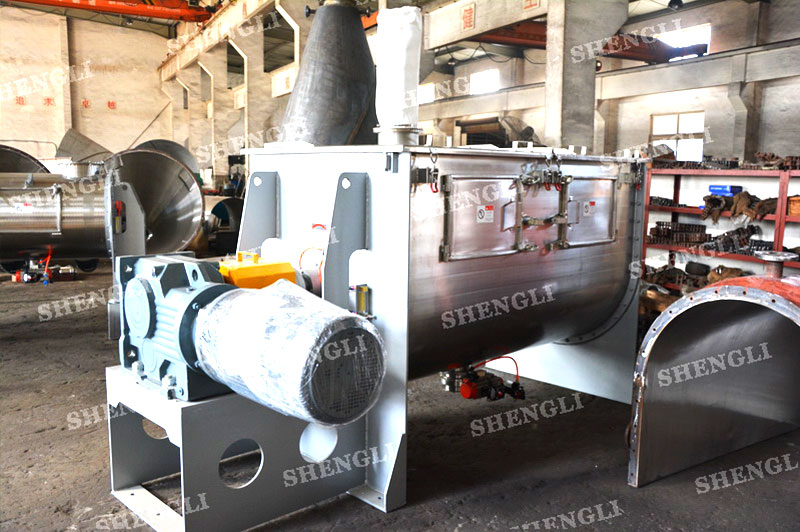 工作原理:螺帶臥式攪拌設(shè)備采用U型筒體,內(nèi)裝平行主軸,主軸上安裝正反雙向的盤(pán)條螺帶,不同維度螺帶分內(nèi)螺帶與外螺帶,物料在螺帶的驅(qū)使下反復(fù)參混,能夠快速高效的混合。