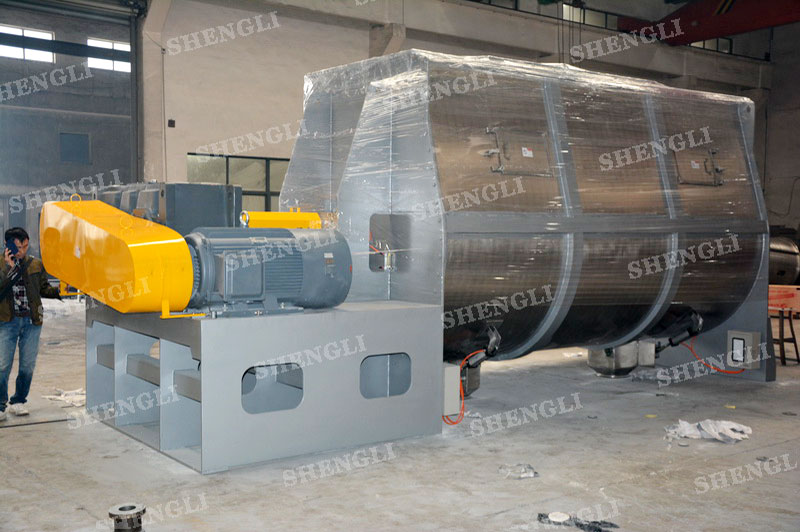 工作原理:螺帶攪拌設備采用U型筒體,內(nèi)裝平行主軸,主軸上安裝正反雙向的盤條螺帶,不同維度螺帶分內(nèi)螺帶與外螺帶,物料在螺帶的驅使下反復參混,能夠快速高效的混合。